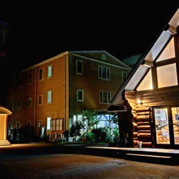 - 食堂はログハウス風、宿舎と食堂が隣接(移動楽)